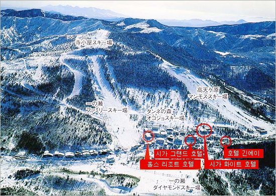 ½Ã°¡ °í°Õ(Shiga Kogen) ½ºÅ°Áö¿ª Áß ÇϳªÀÎ ÀÌÄ¡³ë¼¼ ÆÐ¹Ð¸®(Ichinose Family) ½ºÅ°Àå¿¡ À§Ä¡ÇÑ ½ºÅ° ÀÎ-¾Æ¿ôÀÇ È£ÅÚ À§Ä¡¸¦ ³ªÅ¸³»´Â ÁöµµÀÔ´Ï´Ù. À̰÷¿¡ ³ª¿ÍÀÖ´Â °¢ È£ÅÚÀº ½ºÅ°½ºÅ°´åÄÄ¿¡¼ ¼±Á¤ÇÏ¿© »ç¿ëÇÏ´Â ÃÖ°íÀÇ ½Ã¼³°ú °¡Àå ÁÁÀº°÷¿¡ À§Ä¡Çϰí ÀÖ½À´Ï´Ù.