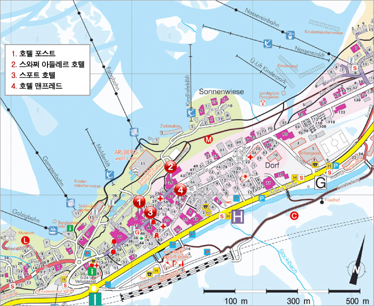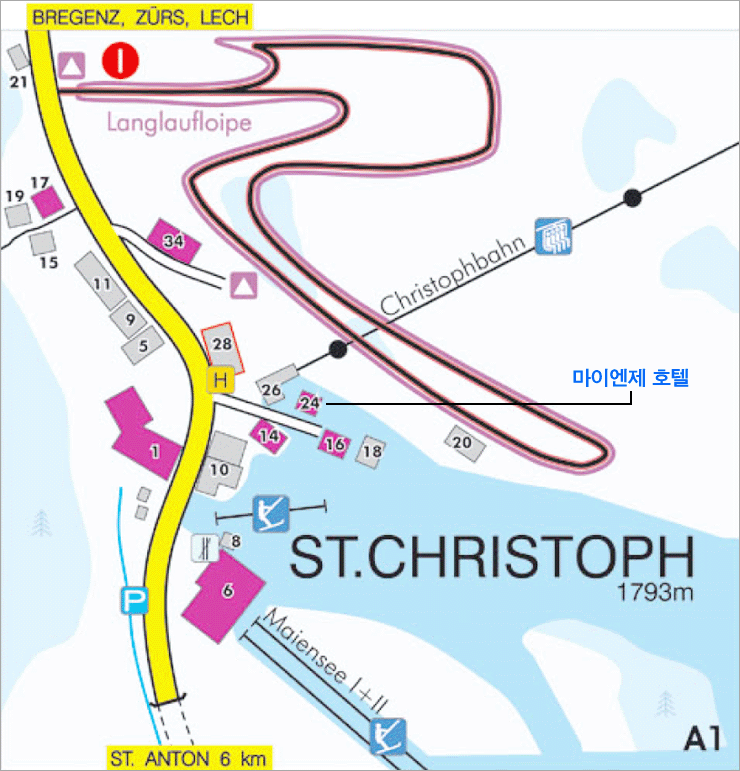 ¾Ëº£¸£±×(Arlberg) ½ºÅ° Áö¿ª Áß »ý ¾ÈÅæ(St. Anton) °ú »ý Å©¸®½ºÅäÇÁ(St. Christoph) ½ºÅ°Àå¿¡ À§Ä¡ÇÑ ½ºÅ° ÀÎ-¾Æ¿ôÀÇ È£ÅÚ°ú ¸®ÇÁÆ® ž½ÂÀå ¹Ù·Î ¾Õ¿¡ À§Ä¡ÇÑ È£ÅÚ À§Ä¡ ÁöµµÀÔ´Ï´Ù. À̰÷¿¡ ³ª¿ÍÀÖ´Â °¢ È£ÅÚÀº ½ºÅ°½ºÅ° ´å ÄÄ¿¡¼ ¼±Á¤ÇÏ¿© »ç¿ëÇÏ´Â ÃÖ°íÀÇ ½Ã¼³°ú °¡Àå ÁÁÀº°÷¿¡ À§Ä¡Çϰí ÀÖ½À´Ï´Ù.